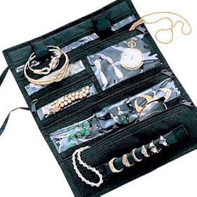 This Travel Jewelry Portable Roll Case Pvc Black Microfiber - Household Essentials #6904 is a full length lined pouch that has six zippered pockets that are double padded (has a really nice feel) for extra protection of all your jewelry. The pockets are clear so you can see what is in each of them. The ring holder simply unhooks at one end with a very sturdy Velcro connection. Hook and loop straps allow you to hang this organizer if so desired. It is made of durable PVC microfiber and when opens it is a generous 11.25 x 9.25 inches. It has a tie closure and easily folds and tucks into your suitcase or train case. This organizer is wonderful for people on the go, those who want to be organized when they travel. It also works in your own bathroom, for students off to college, for campers and for anyone who wants to stay organized. It is not fancy or fussy but is functional, a great quality and value priced. A lady should never travel without her jewelry! A perfect gift item.Household Essentials (formerly Whitney Design) specializes in designing innovative Laundry, Closet, Bath and Kitchen storage and organizational products. Their mission is to create solutions that make your day-to-day activities easier and more enjoyable.Size: 11.25L x 9.25W Inches -- Color: Black